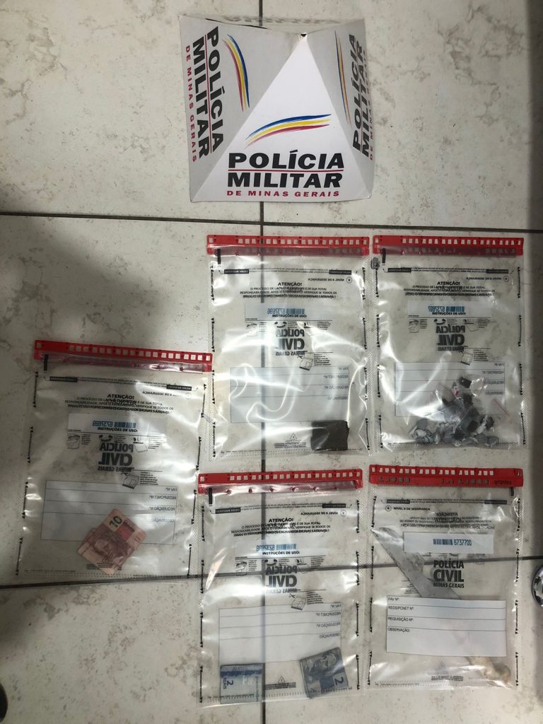 No local, os policiais encontraram a mulher alvo da denúncia junto com diversas outras pessoas. Foram apreendidos 21 buchas e um tablete de maconha.