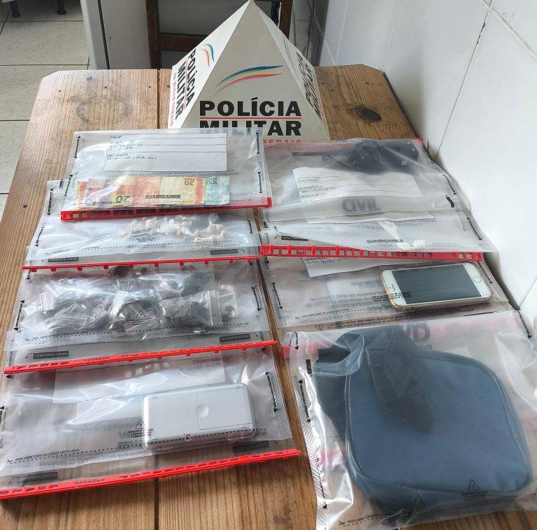 Um adolescente de 13 anos foi apreendido por tráfico de drogas no início da tarde de terça-feira (24) em um condomínio no bairro Grogotó, em Barbacena. Foram apreendidos 30 pedras de crack, 24 porções de maconha, dois tabletes de cocaína, um rádio comunicador, uma balança de precisão e a quantia de R$ 180,00.