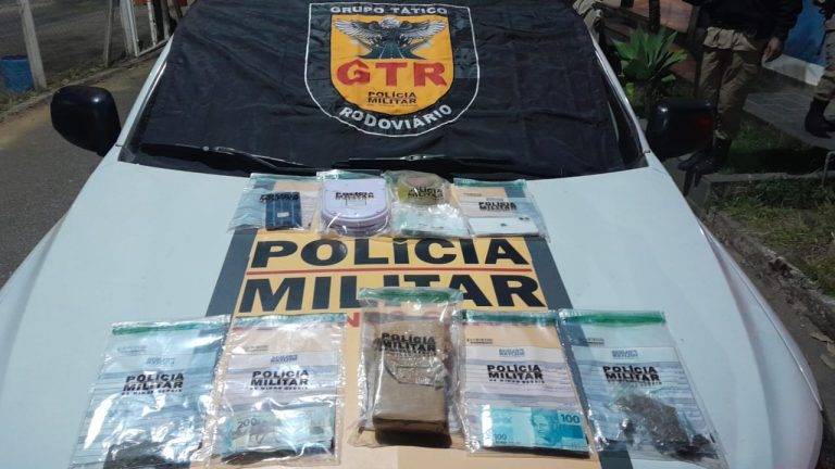 Um homem e uma mulher foram presos por tráfico de drogas na noite de quarta-feira (02), em São João del Rei. Com eles, a Polícia Militar Rodoviária apreendeu quatro porções de maconha, um barra prensada da mesma substância, uma balança de precisão e a quantia de R$ 2.431,00.