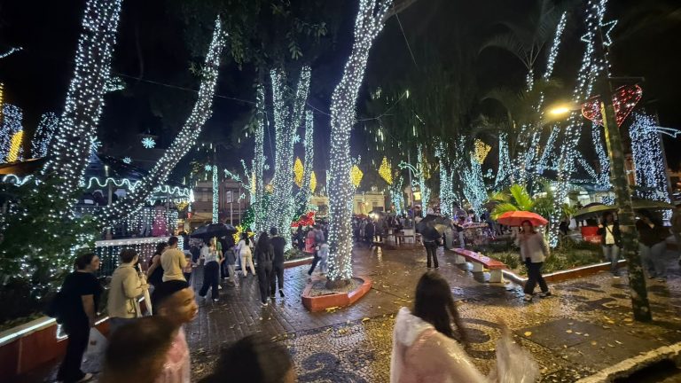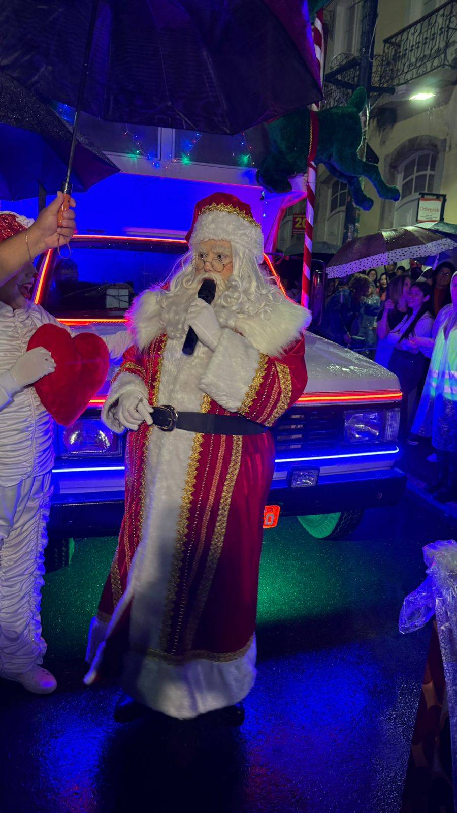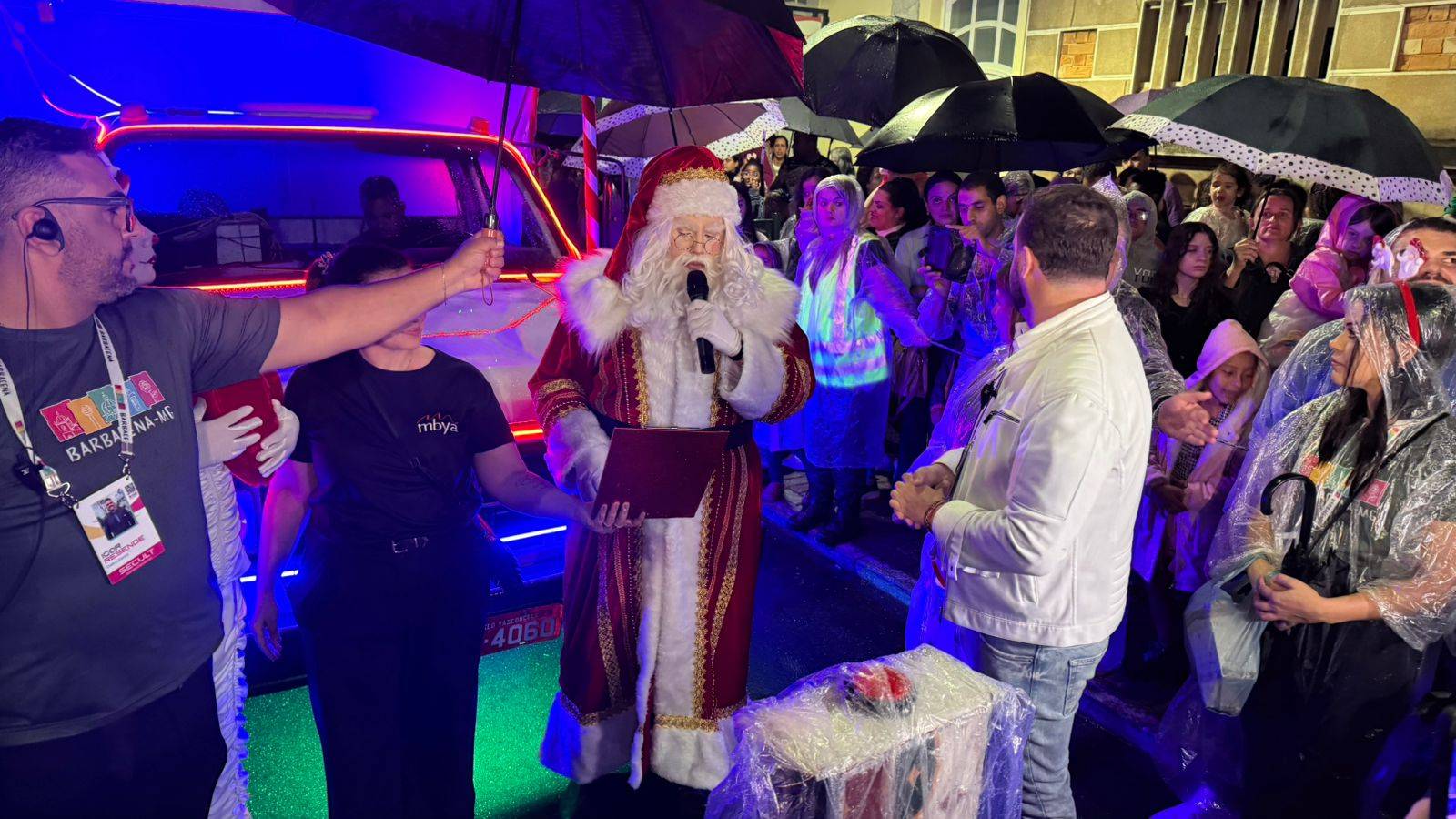 A chuva não impediu os barbacenenses de acompanhar a movimentação em torno dos pontos instagramáveis do Sonho de Natal, versão 2025. Denominado Natal do Amor, o acendimento das luzes aconteceu na noite desta sexta-feira (14), mesmo debaixo da chuva que insistia em cair. A inauguração das luzes do natal, em Barbacena, foi feita pelo vice-prefeito, Aloísio Dias.