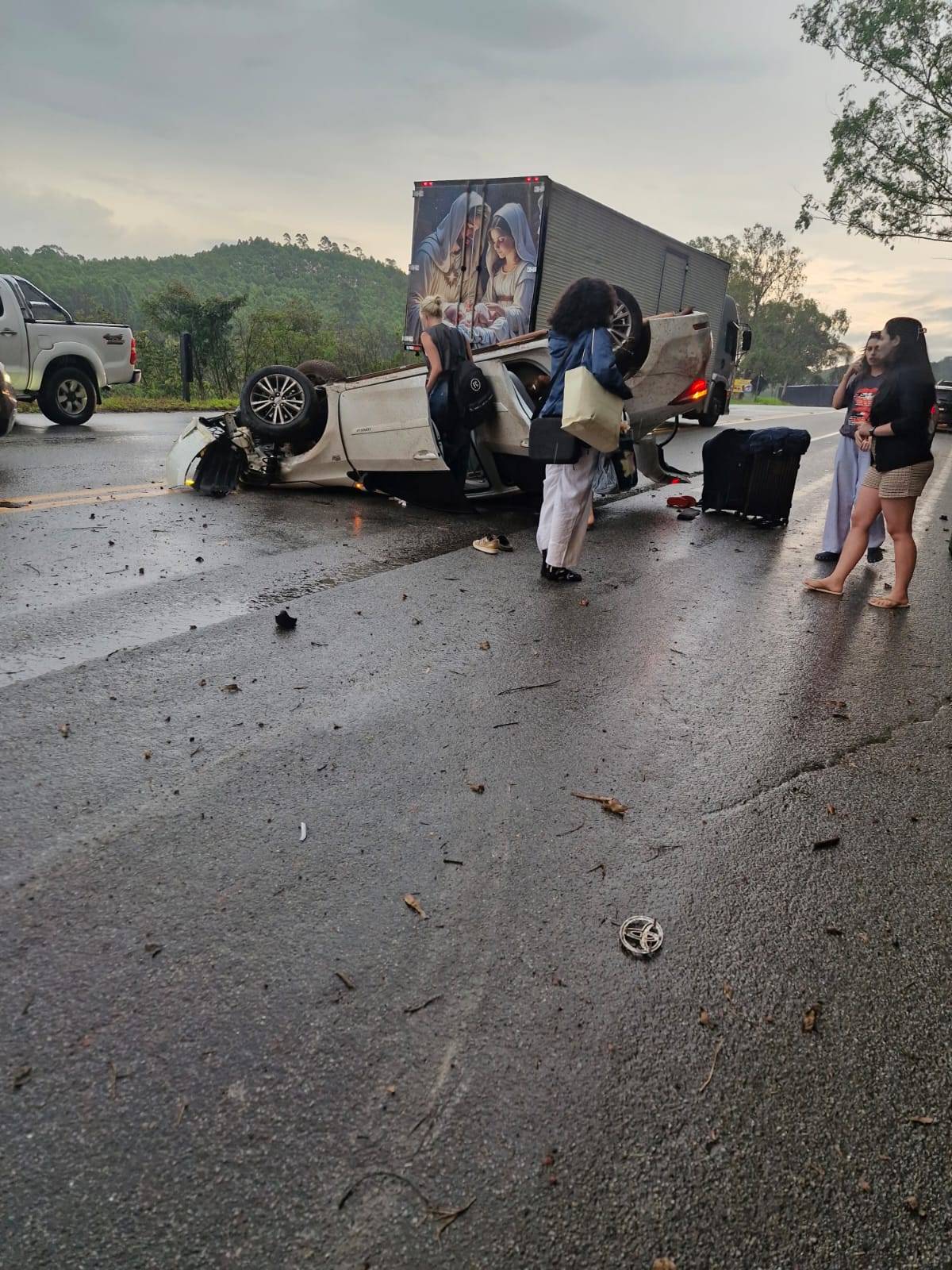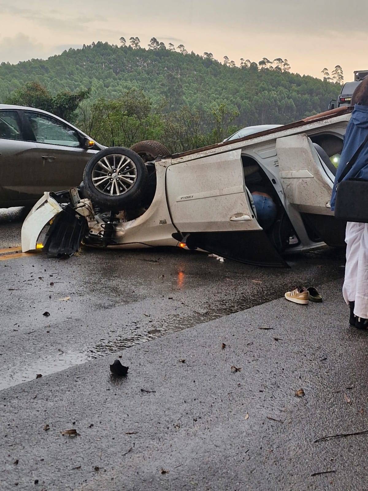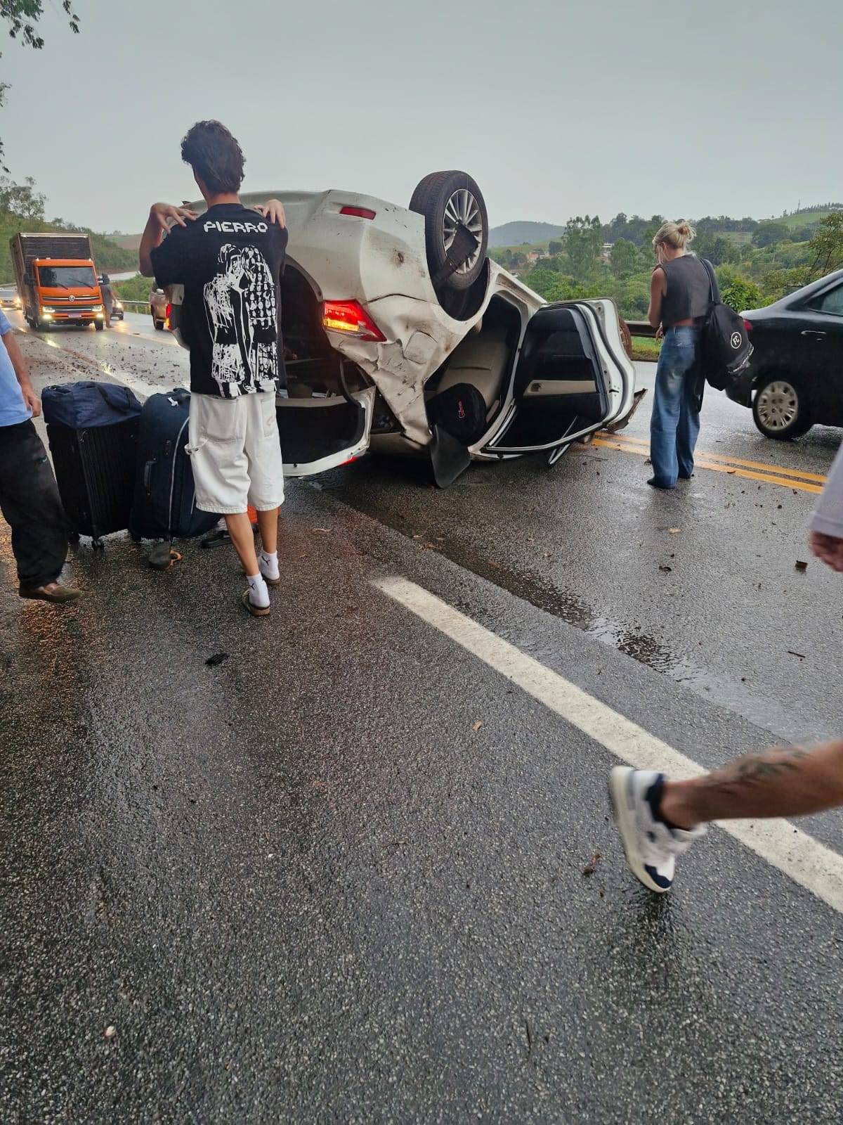 Houve um capotamento na tarde deste domingo (16), na BR 040, próximo ao Restaurante Caldeirão Mineiro (antigo Gauchão), em Carandaí. O acidente foi no km 671 + 200 e a pista estava molhada no momento em que ocorreu o sinistro.