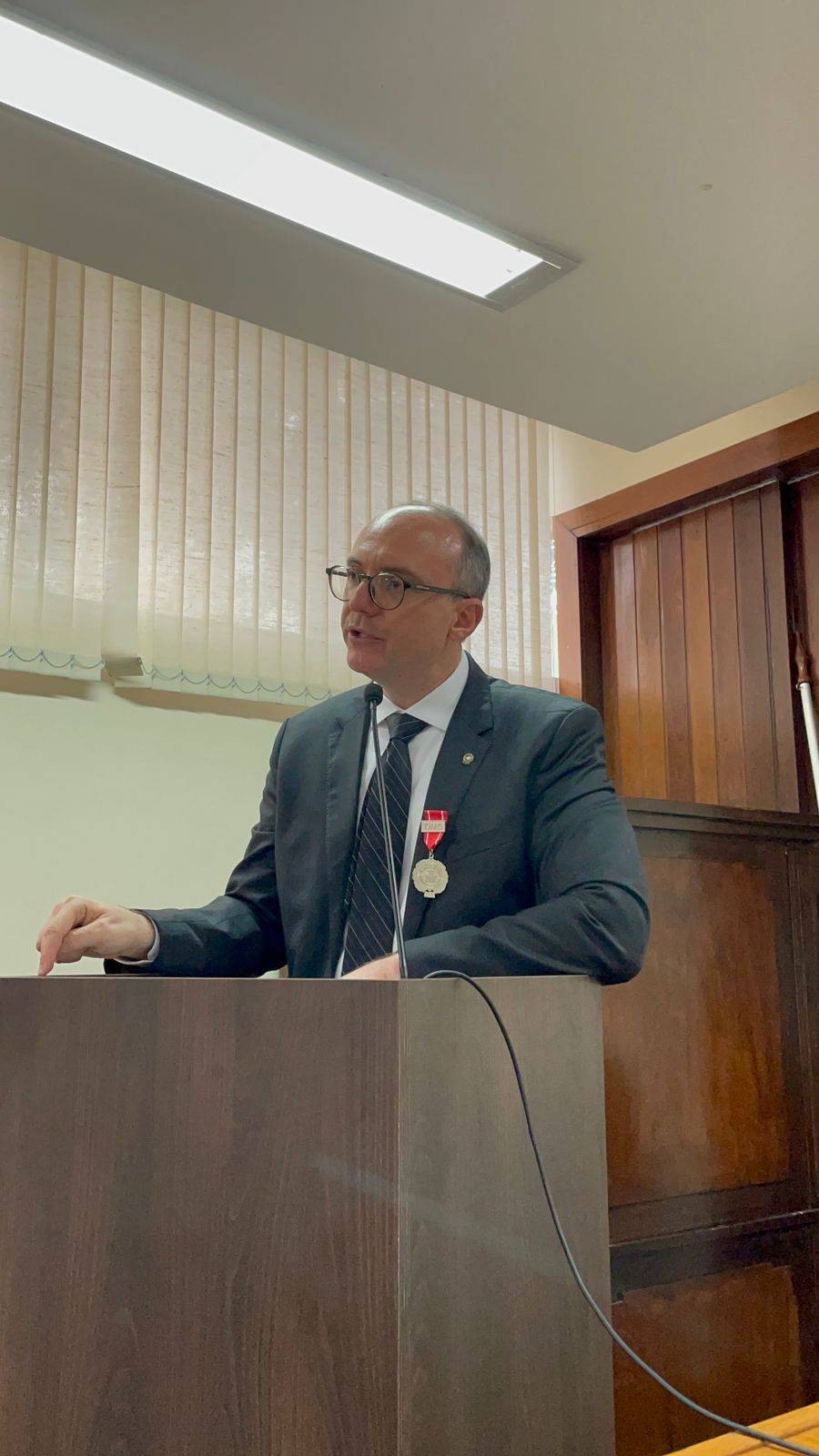 Numa solenidade que aconteceu na tarde desta quarta-feira (03), o Juiz de Direito Alexandre Verneque Soares recebeu a Medalha Desembargador Hélio Costa. A sessão solene foi presidida pelo Juiz de Direito Diretor do Foro da Comarca de Barbacena, José Carlos dos Santos e o agraciado recebeu a saudação do Promotor de Justiça Vinícius de Souza Chaves.