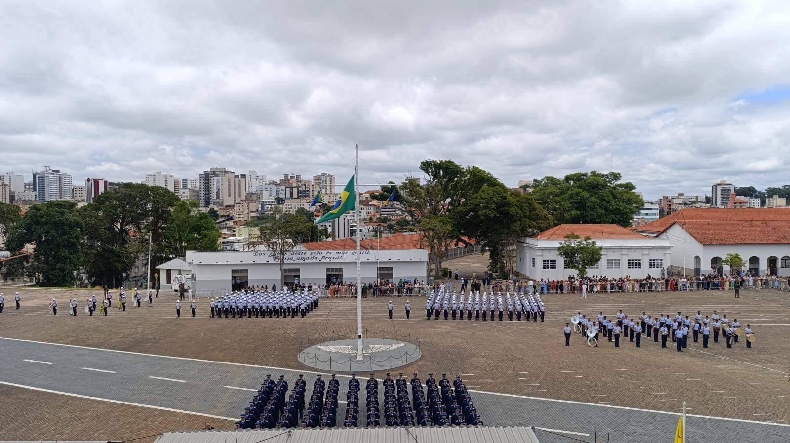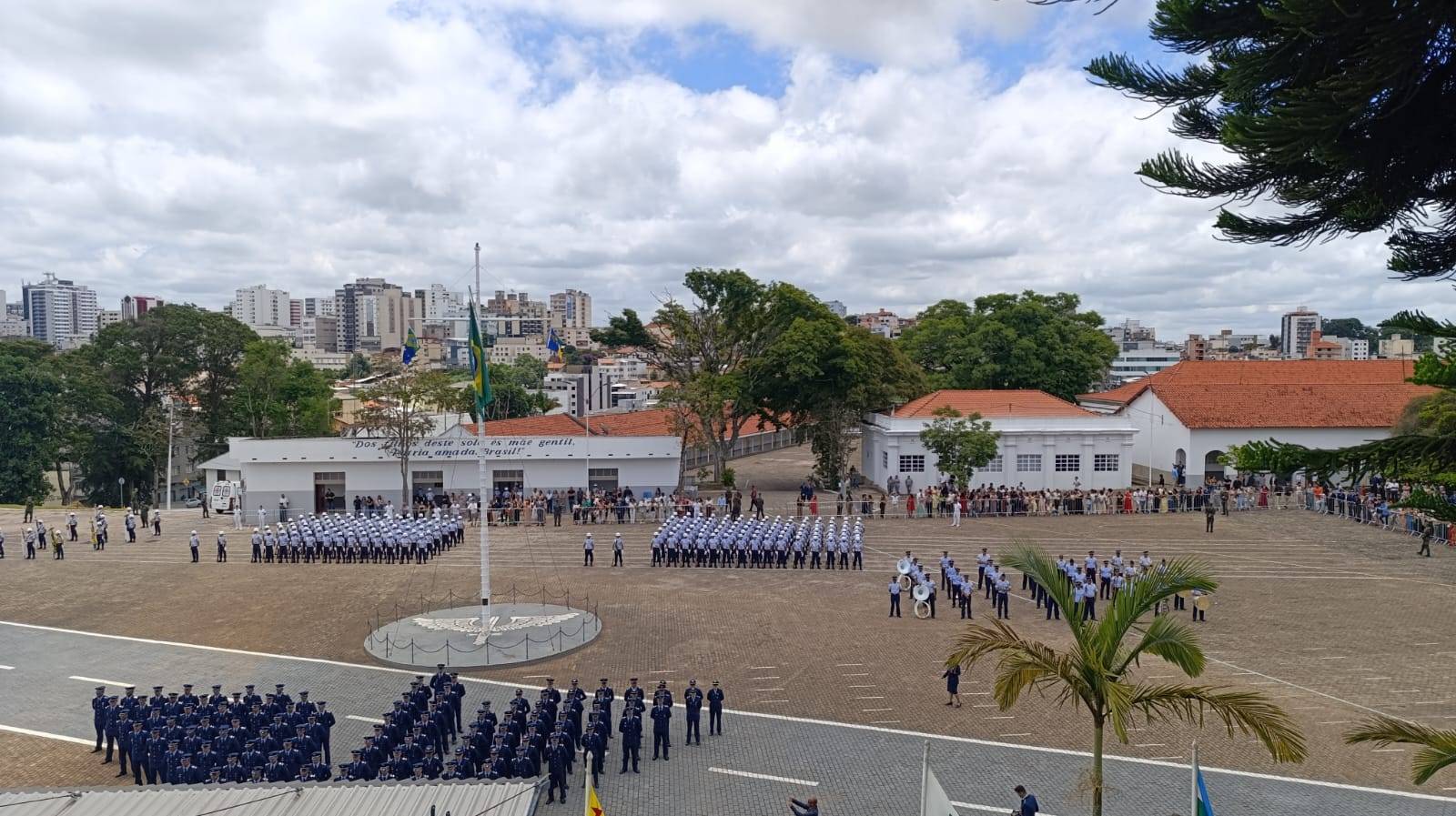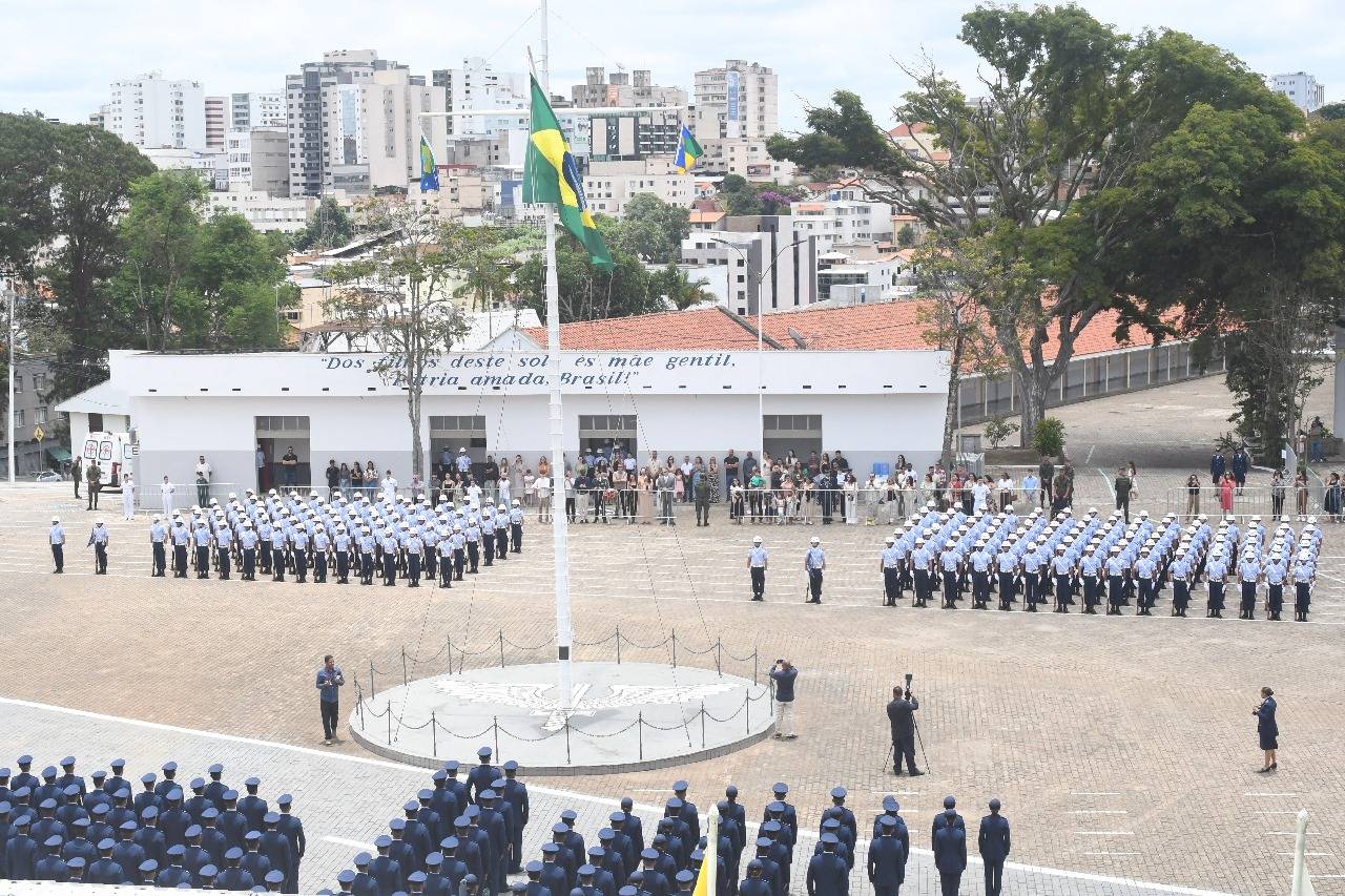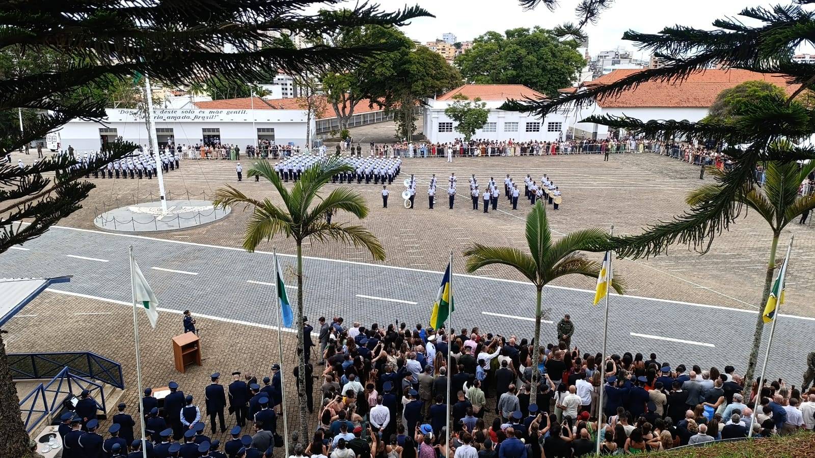 A cerimônia aconteceu no Pátio da Bandeira e aeronaves da Força Aérea Brasileira (FAB) realizaram sobrevoos sobre a cidade de Barbacena.