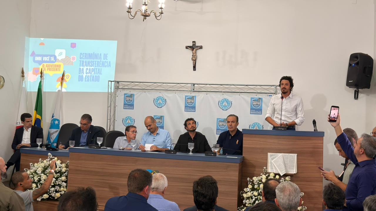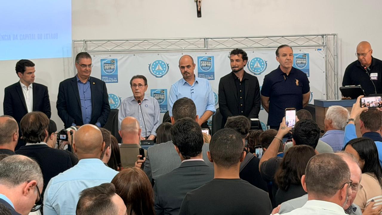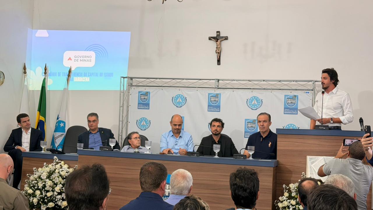 Na tarde desta segunda-feira (27), o governador em exercício de Minas Gerais, Mateus Simões (NOVO), esteve em Barbacena para a cerimônia oficial de transferência simbólica da capital do estado de Belo Horizonte para o município. O evento ocorreu às 13h15, na Câmara Municipal.