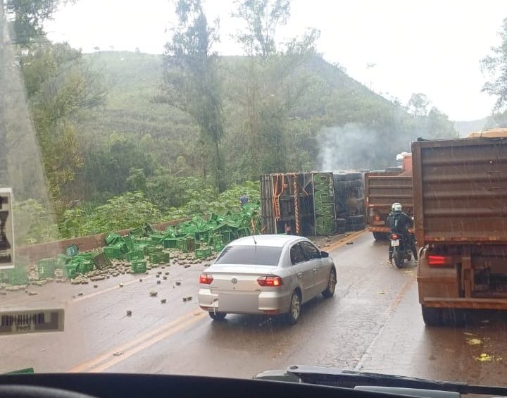 Um acidente foi registrado no início da tarde desta quarta-feira (17) no km 589 da BR 040, em Itabirito, no trecho conhecido como Curva da