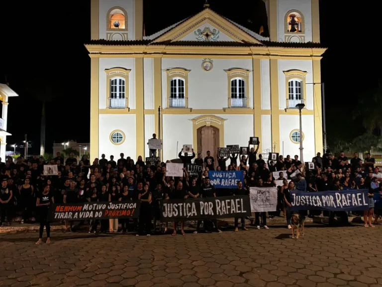 Na noite de terça-feira (17), moradores de Ibertioga se reuniram em frente ao Hospital Monumento às Mães para uma passeata em homenagem a Rafael Fagundes,