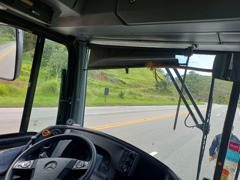 Na manhã desta quinta-feira (08), um ônibus foi danificado no km 754 da BR 040, em Ewbank da Câmara. O autor, um homem de 52