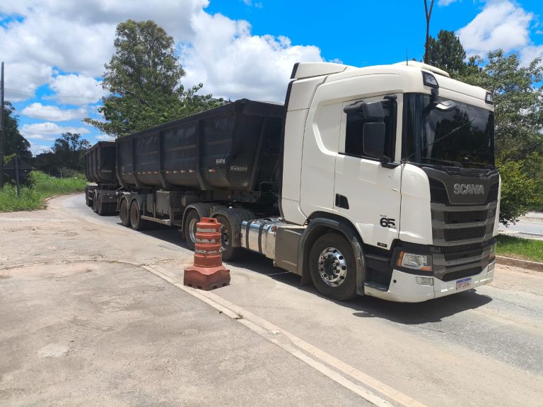 Um sujeito de 26 anos foi preso nesta sexta-feira (09). Ele era o motorista de um caminhão trator, Scania, acoplado a dois reboques e um