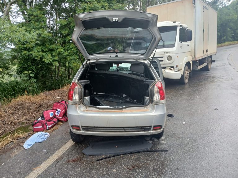 Um acidente entre um carro e um caminhão deixou cinco feridos no início da tarde de segunda-feira (05) no km 268 da MGC 482, em