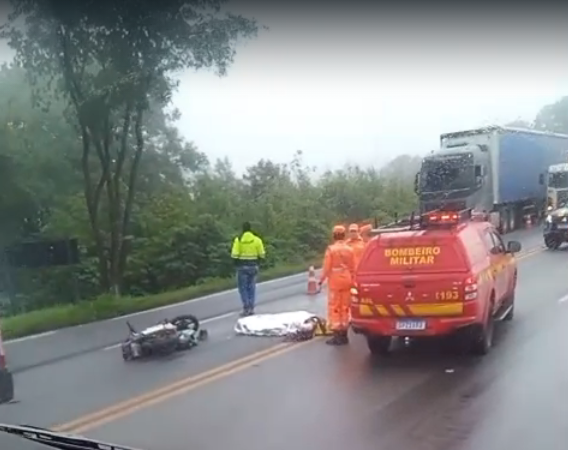 Na manhã desta sexta-feira (19), por volta das 09h, um carro e uma moto colidiram no km 660 da BR 040, em Carandaí. Os dois