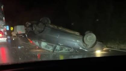 A chuva pode ter sido a causa de um capotamento na noite desta segunda-feira (24), no km 716, da BR 040. O local do acidente