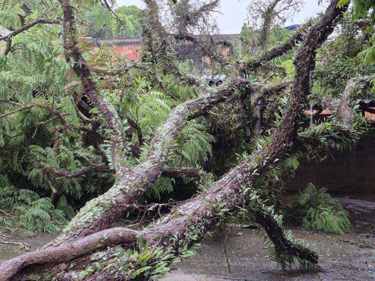 Em razão da forte chuva que atingiu Barbacena na tarde de sábado (08) foi registrada uma ocorrência de queda de árvore dentro de um condomínio