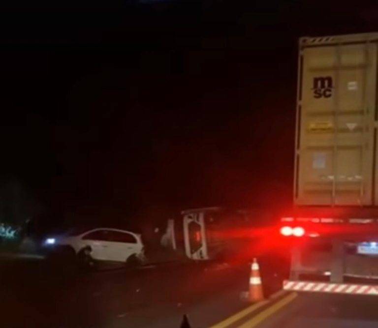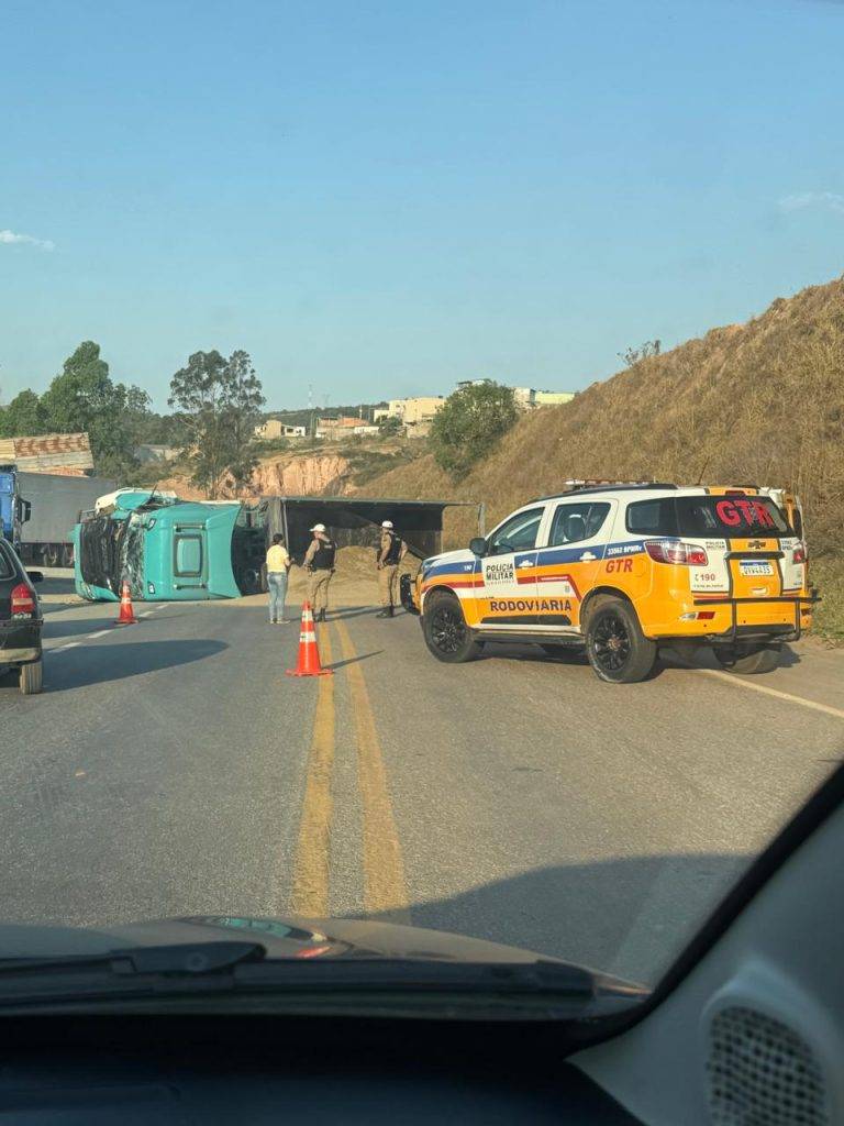 Um acidente envolvendo vários veículos, entre eles um ônibus e um caminhão, interditou totalmente a BR-040, na altura do km 678, próximo à descida de