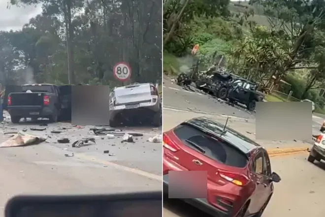 Trem atropela e arrasta veículos em passagem de nível de Carandaí