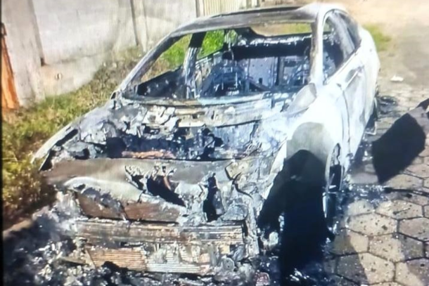 Na noite de quinta-feira (26), um carro que estava estacionado em uma rua de Ibertioga foi completamente destruído pelas chamas. A suspeita é de que